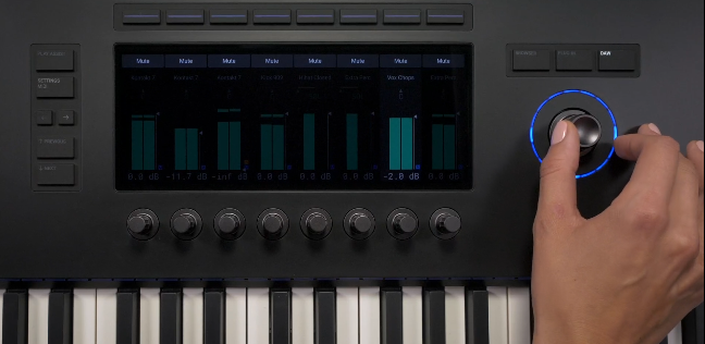 Más profundamente en tu DAW La integración fluida con los principales DAW significa que puede mantener la vista en el teclado y alejada de la pantalla de la computadora. Presione grabar, detener y rebobinar con las teclas, mezcle y edite, y vea todos los canales de su proyecto en la pantalla. | ![]() |