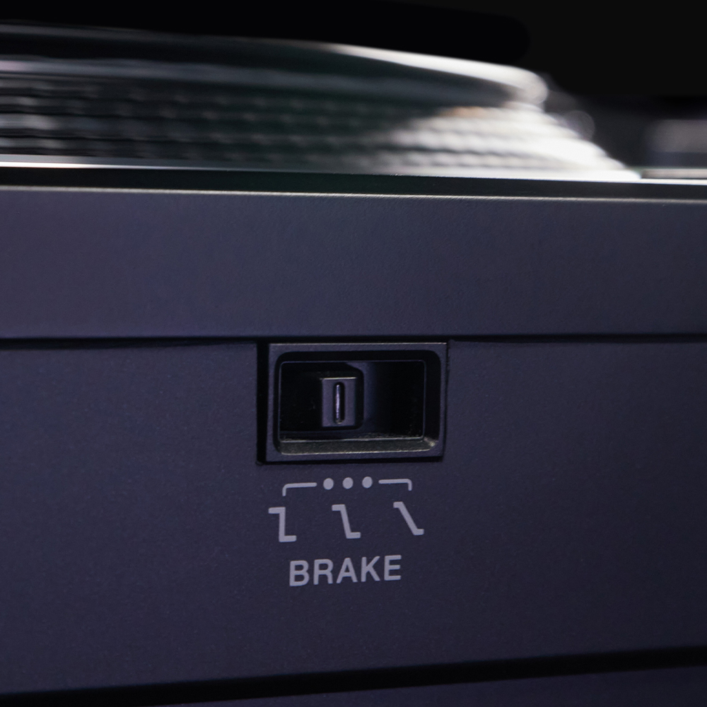 Use el interruptor en la parte delantera del deck para ajustar el tiempo que tarda el tocadiscos en detenerse cuando presiona STOP. El "Min" es nítido. El "Mid" utiliza una velocidad de parada tradicional que es familiar para los DJ. Y el "Max" crea la velocidad de frenado más larga para un final gradual y espectacular de una pista o actuación. | ![]() |