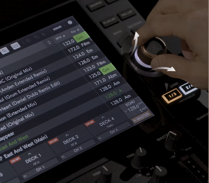 ![]() | Selección rápida y precisa de pistas, incluso desde las colecciones más grandes. Encuentra tus pistas con más rapidez y precisión que nunca antes gracias al nuevo diseño de la interfaz de usuario con un módulo táctil electrostático. No importa lo grande que sea tu biblioteca musical, puedes usar la pantalla táctil de 10.1 pulgadas para buscar canciones rápidamente a través del teclado o usar Playlist Bank (Banco de listas de reproducción) para navegar rápidamente entre listas de reproducción. Con Touch Preview (Vista previa táctil), puedes incluso previsualizar las pistas mientras navegas. El nuevo selector giratorio inteligente ofrece una experiencia similar a la de un joystick con control de izquierda/derecha, arriba/abajo, rotación y pulsación. Y los demás controles de navegación están perfectamente dispuestos alrededor del selector para que puedas recorrer tu colección de música y previsualizar y cargar pistas sin mover la mano. |